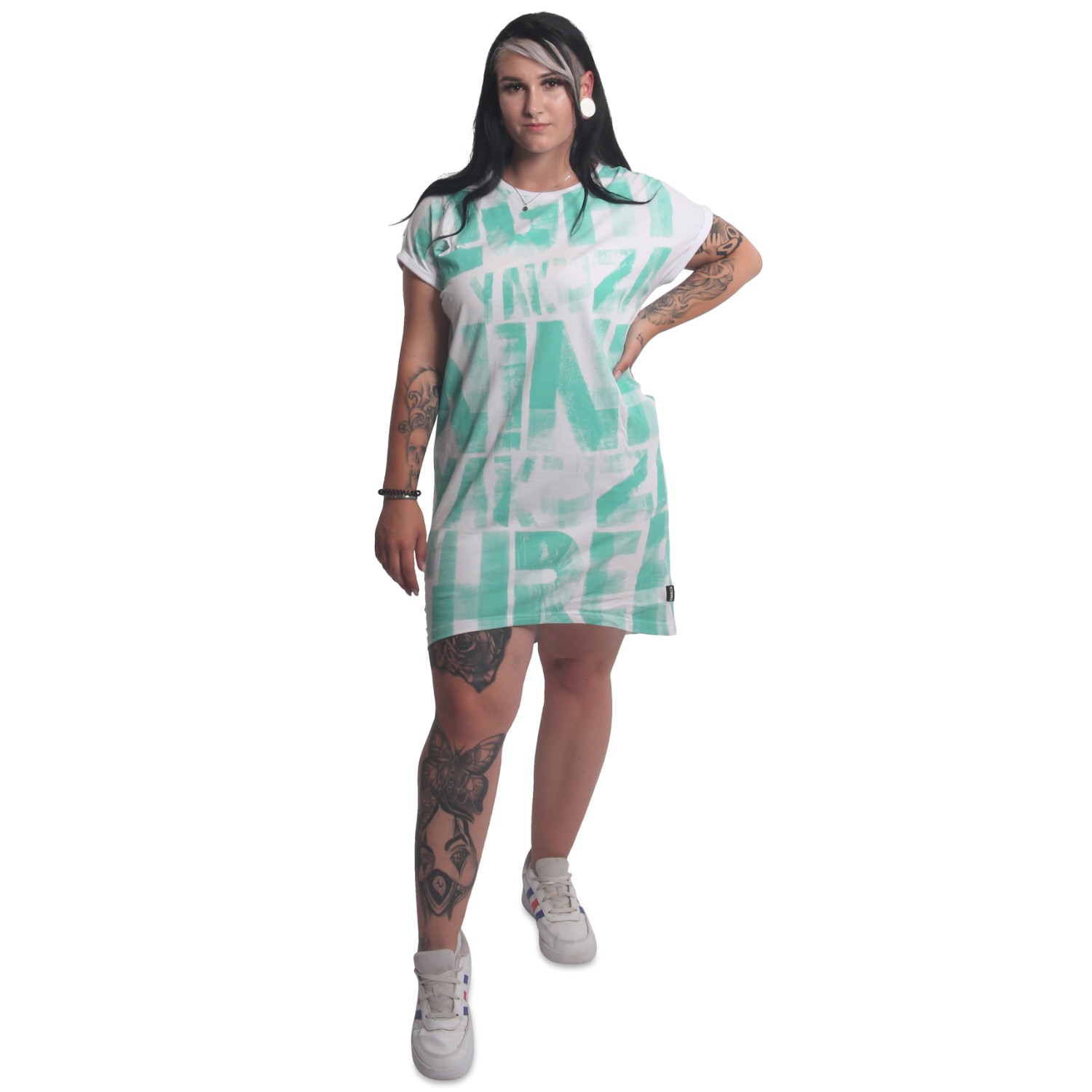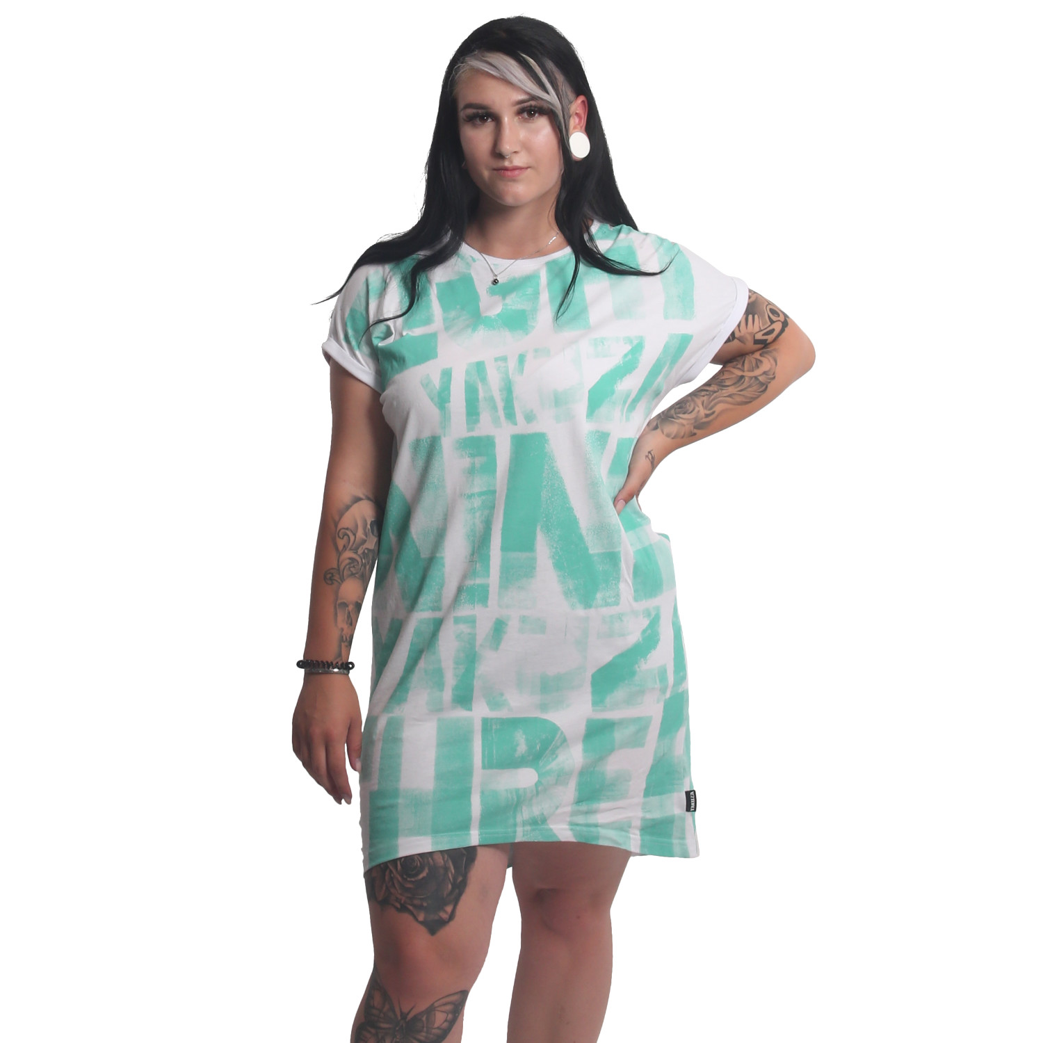 YAKUZA BRANDED Kleid für Damen. Das perfekte Teil für den Alltag in dieser Saison. Dieses bequeme, superweiche T-Shirt-Kleid präsentiert sich in lässiger Passform - Nicht zu eng, nicht zu weit, genau richtig. Ausgestattet mit Rundhalsausschnitt und kurzen Ärmeln sowie abgerundetem, auf der Rückseite verlängertem Saum. Vervollständigt mit Alloverprint sowie einem Logoetikett an der Seitennaht. Bitte beachte die Größenangaben und unsere Waschanleitung.