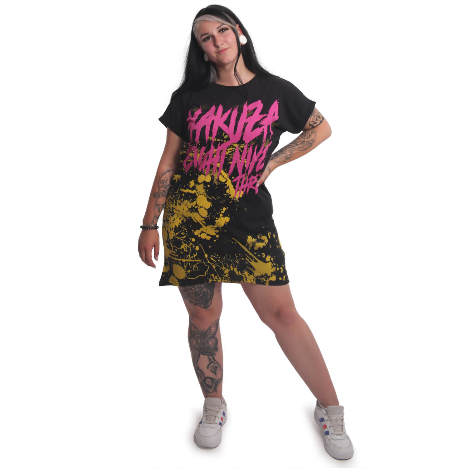 YAKUZA SPOTTED Kleid für Damen. Das perfekte Teil für den Alltag in dieser Saison. Dieses bequeme, superweiche T-Shirt-Kleid präsentiert sich in lässiger Passform - Nicht zu eng, nicht zu weit, genau richtig. Ausgestattet mit Rundhalsausschnitt und kurzen Ärmeln sowie abgerundetem, auf der Rückseite verlängertem Saum. Vervollständigt mit Grafikprint sowie einem Logoetikett an der Seitennaht. Bitte beachte die Größenangaben und unsere Waschanleitung.